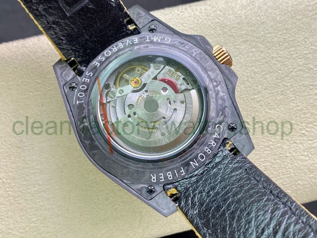 [Case] ​​The size of the watch is 40X12.2, which is consistent with the original. JH ingenuity casts the unique style of carbon fiber Rolex Greenwich. The market exclusively uses raw materials imported from Japan and uses nanotechnology to create a full carbon fiber watch case. There will be no pores in the case body. The bezel and bottom cover are made of high-composite carbon fiber and super luminous powder. The details are hand-chamfered and polished. The texture is extraordinary.