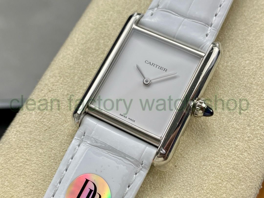 DR Factory Cartier Tank Louis Cartier Special Edition 22mm Steel White Leather Strap White Dial