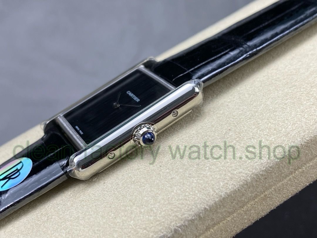Produced by DR factory! Cartier Tant Must tank series. The Tank Must watch draws inspiration directly from the Tank Louis Cartier watch, and its lines and outlines are closer to historical models. Tank Must’s lugs are full and round, and the proportions of the dial have been re-considered. Slimness and uniqueness are the main thread running through the new design, making it look more refined! The spinel on the crown is also tapered, and the buckle has been changed from a butterfly buckle to a pin buckle, making it more comfortable to wear. It also has a quick-release strap function, making it easy to replace the chain strap or strap by yourself! Moreover, the small and medium-sized models use large-sized Swiss ultra-thin movements to achieve high-efficiency battery life! Every aspect is exquisite and sophisticated! Medium size: 33.7mm*25.5mm Small size: 29.5mm*22mm. Two sizes are available. With American crocodile strap, the overall internal structure of the movement is truly 1:1 [strong].