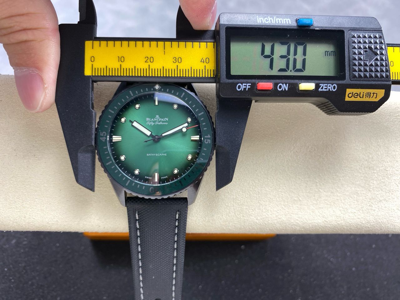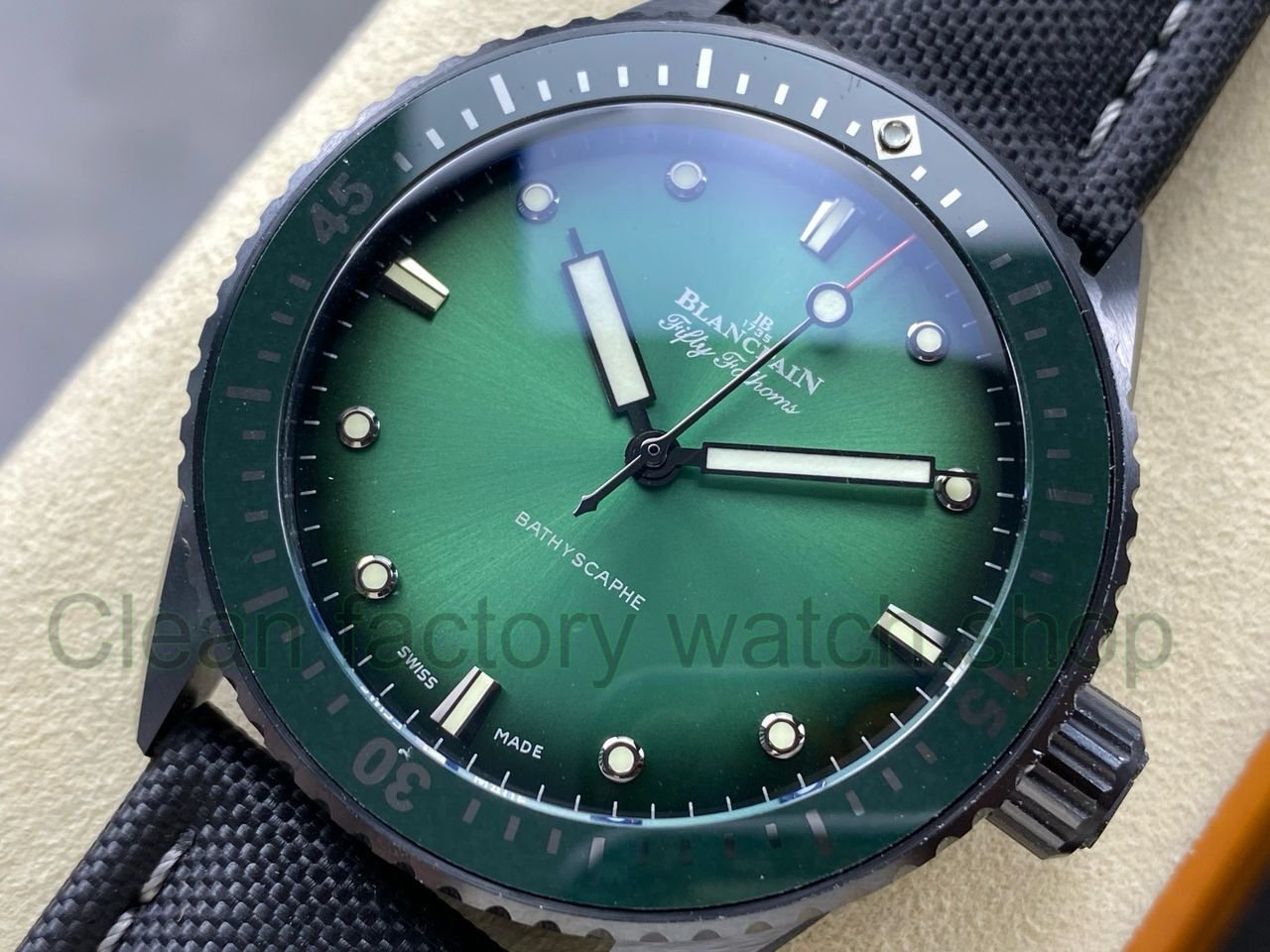 This Blancpain Fifty Fathoms homage by GFF Factory features a high-tech matte grey ceramic case that exudes a refined sheen and premium texture. The material is highly durable—resistant to wear, discoloration, and stains—while remaining lightweight and skin-friendly. With a case design closely matching the original, this timepiece stands out as one of the most faithful and high-quality replicas currently on the market.