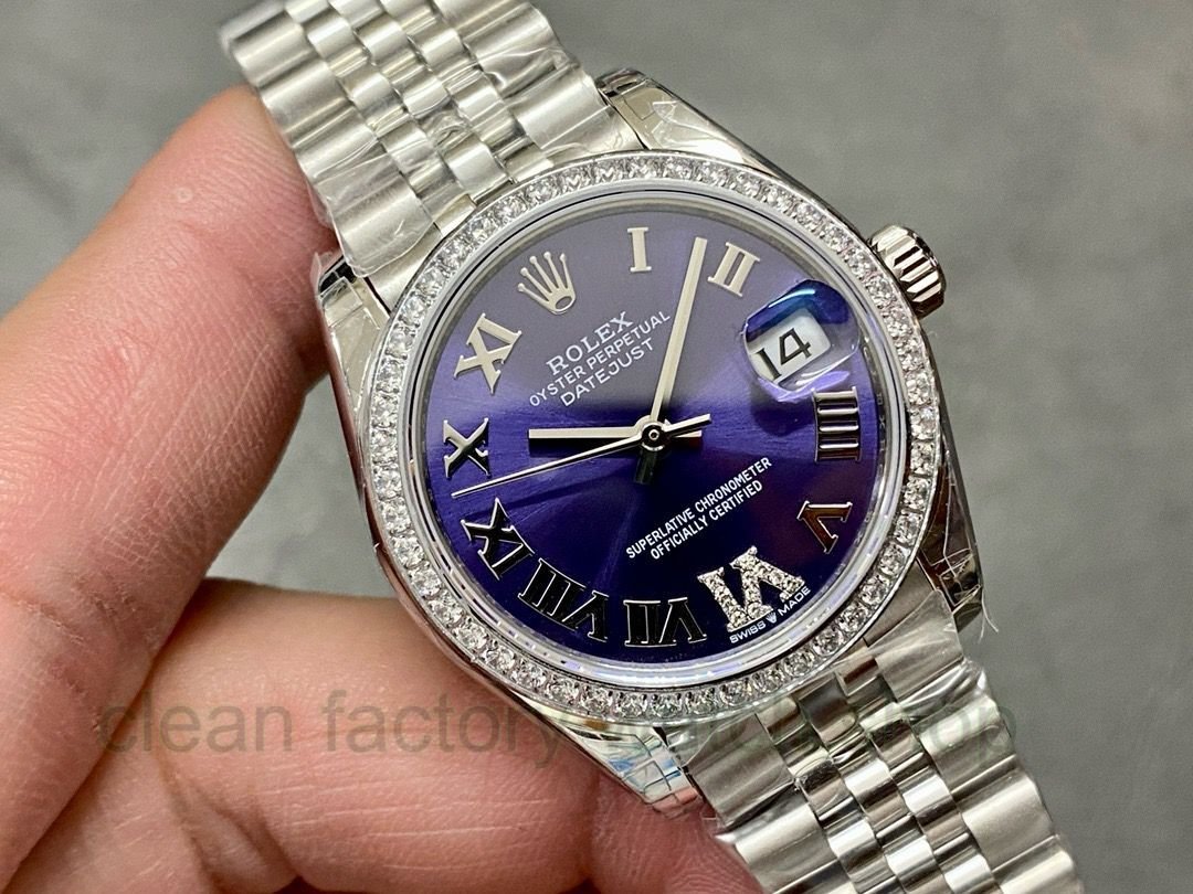 GS Factory Rolex Datejust 278384RBR-0030 31MM Diamond Bezel Roman Number&Diamond Aubergine Purple Dial Jubilee