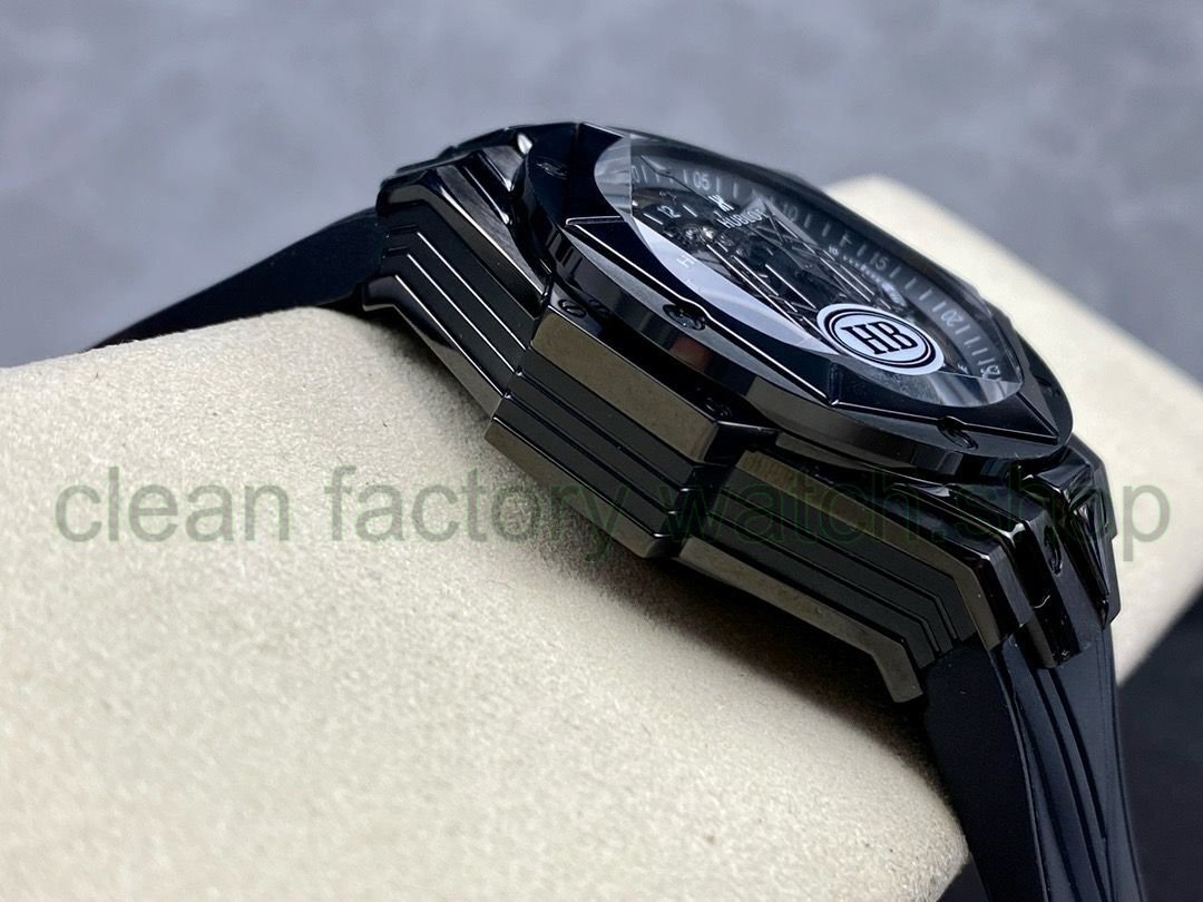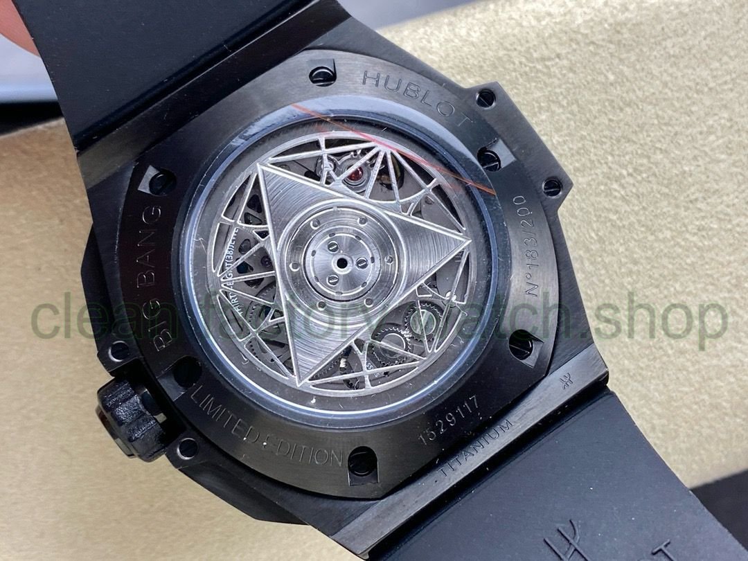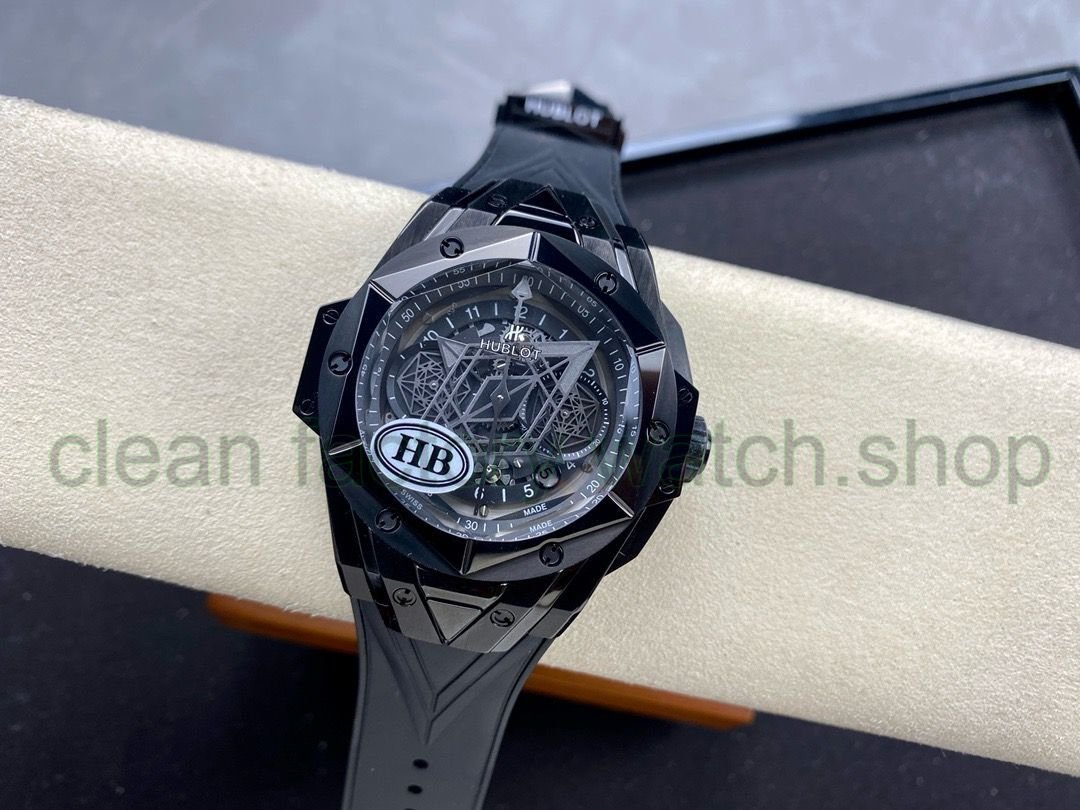 HB Hublot Hublot Tattoo II, the new chronograph mechanical Janus Big Bang Sang Bleu II tattoo watch once again cooperates with the famous tattoo studio Sang Bleu to launch another tattoo ll watch cleverly conceived with geometric figures, a perfect interpretation reflects the brand’s ambition and design philosophy. The Tattoo ll watch uses a more refined line design to create a three-dimensional and vivid three-dimensional visual experience. 1. 45mm case diameter, graphic elements run through the case and are integrated into the hexagonal bezel through cutting and engraving. 6 H-shaped titanium screws firmly secure the bezel. The lugs have a strong sense of design, with steep angles and tough lines.2. The most eye-catching features of the dial are the diamond-shaped hour and minute hands and the two hexagonal dial hands. When the time turns, a different geometric pattern visual effect will appear. 3. The black rubber strap uses geometric lines to present a three-dimensional visual experience. 4. Easy to use folding clasp. 5. It adopts 7750 fully automatic chronograph movement, titanium liner film, satin hollow hands, the watch mirror uses anti-reflective treatment multi-faceted sapphire glass and will never be scratched, and the imported fluororubber strap makes it more comfortable to wear! ! !