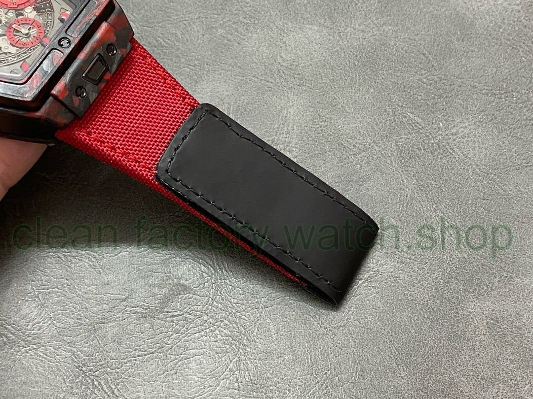 The BIG BANG Soul Series Red Carbon Fiber Watch uses bold red color, presenting a stunning and strong visual impact. The internal precision mechanical structure is clearly displayed through the case. The red hands and hour scale design give the entire surface a strong sense of rhythm and architecture, showing the extraordinary charm of time. The watch is equipped with 30-minute and 12-hour chronograph counters at 3 o’clock and 6 o’clock respectively, which can be individually recorded up to 11 hours, 29 minutes and 59 seconds; there is a second dial at 9 o’clock, and the three dials and hands are also used. The red material echoes the red HUBLOT logo at 12 o’clock.The watch comes with two interchangeable straps, including a fabric sports strap of the same color and a black structured rubber strap. In addition, this watch is equipped with a “one-touch” quick strap replacement system, which allows the wearer to quickly and easily replace the strap with just one click.