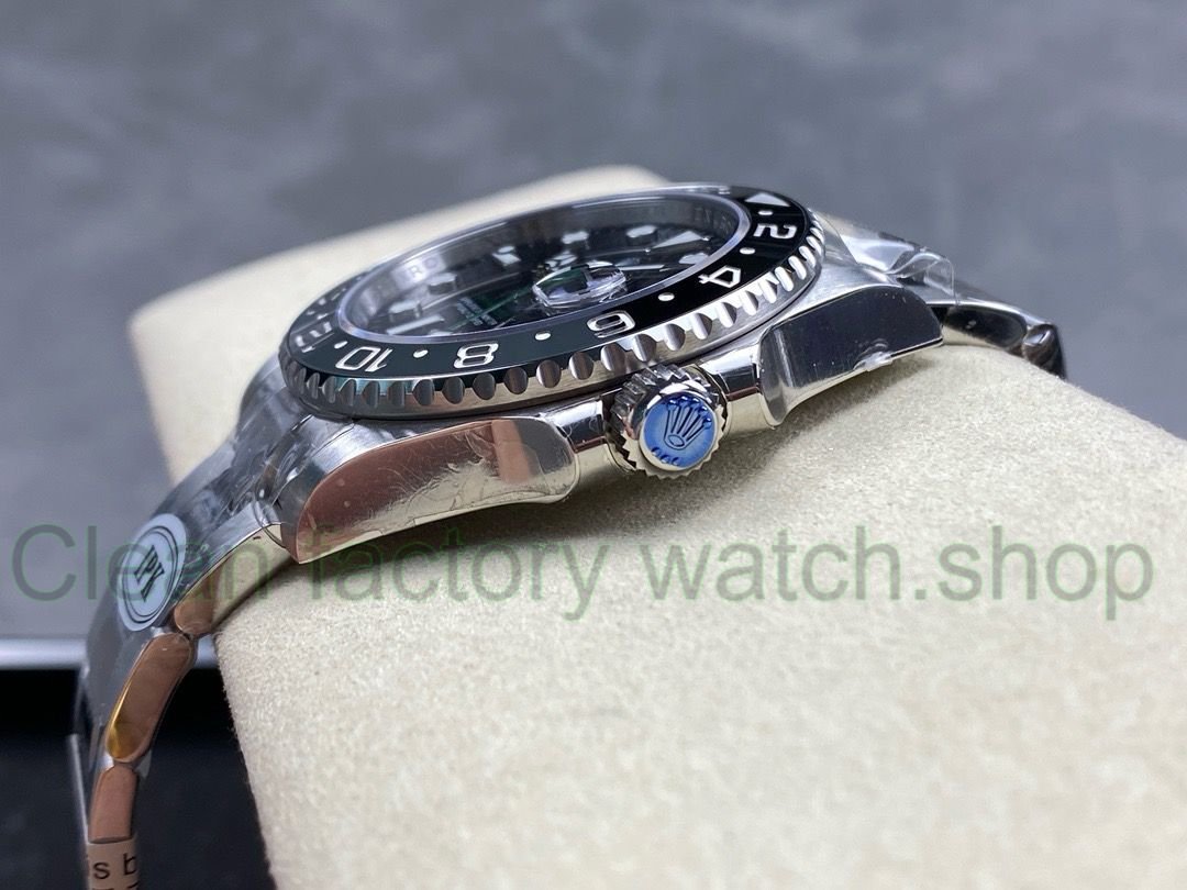 2. Bezel: The real ceramic bezel adopts high-precision high-temperature firing and splicing technology, as well as neat dual time zone scales engraved by laser. The scales are filled with platinum to show more elegance and luxury; the ring mouth has an excellent turning feel and is smooth. The feeling is also constantly modified, completely synchronizing with the original feeling.