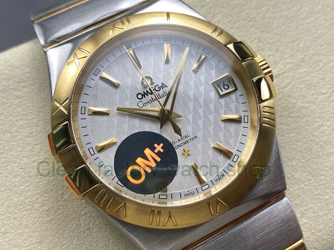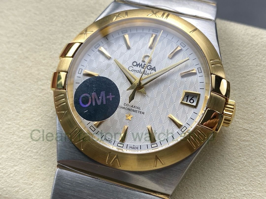 OM+ Factory Omega Constellation Men 123.20.38.21.02.009 38mm Gold/Steel Silver Dial