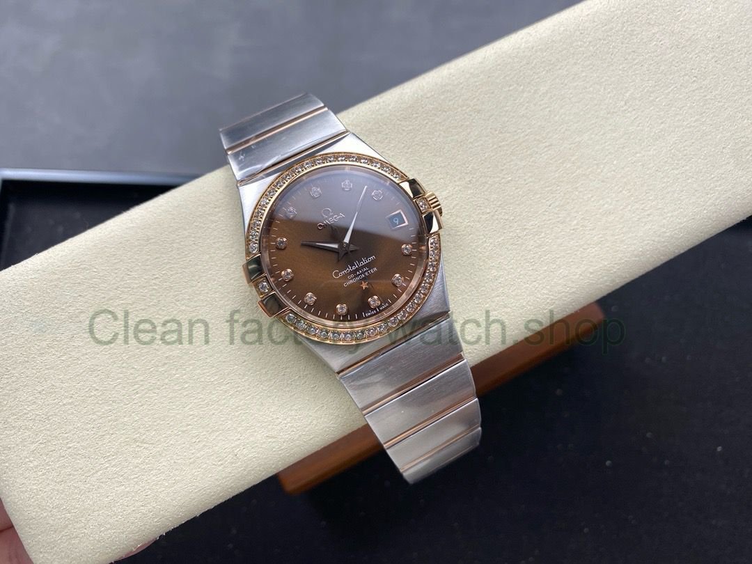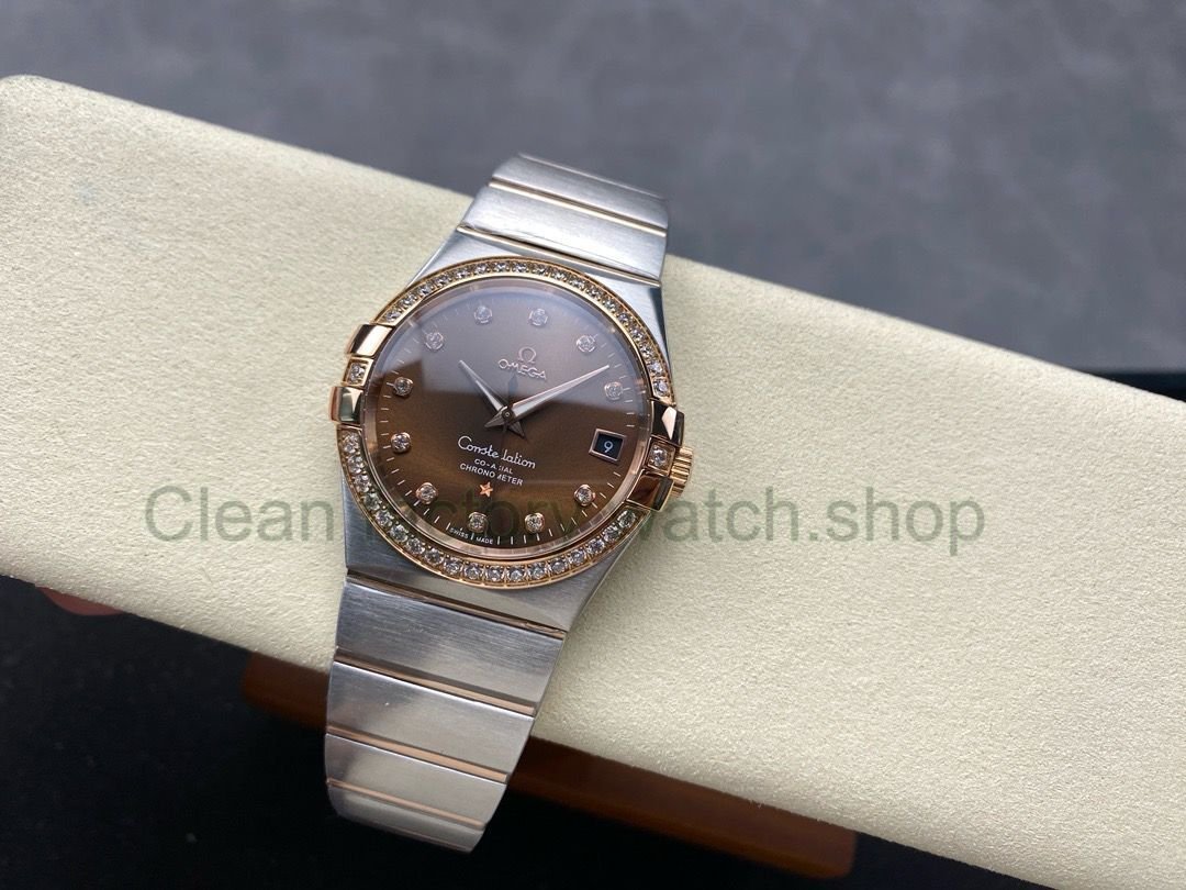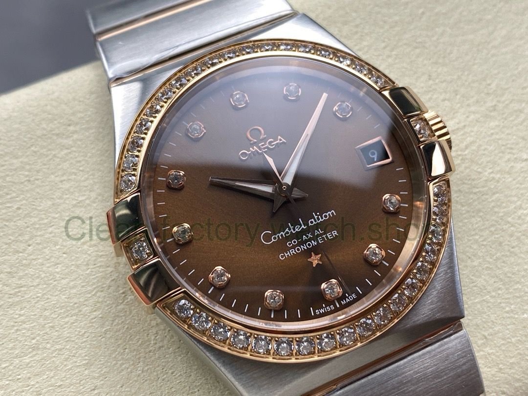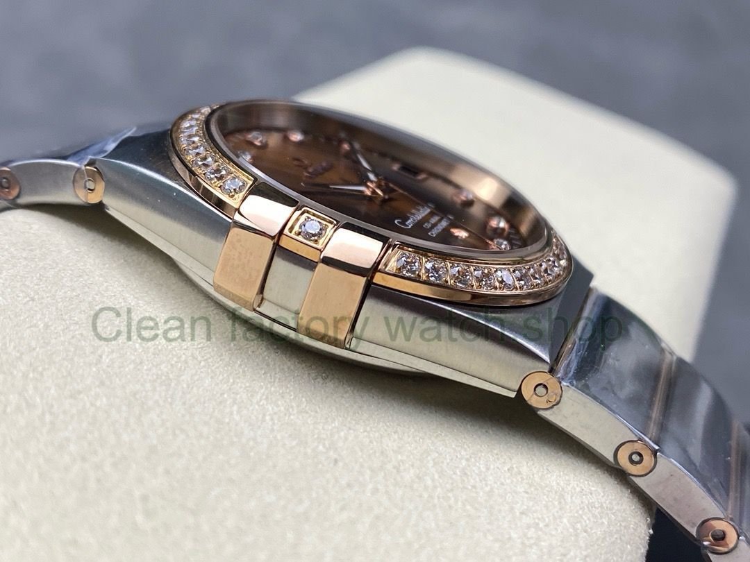 OM+ Factory Omega Constellation Men 123.25.38.21.63.001 38mm Diamond Bezel Rose Gold/Steel Diamond Brown Dial