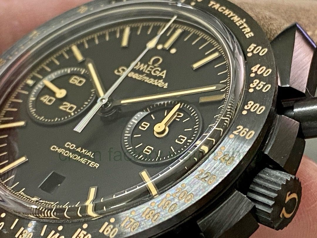OM Factory’s latest masterpiece, the upgraded version of the Omega Omega Dark Side of the Moon series, perfectly strikes out with magic, temptation, mysterious charm, and continues the legend. OM independently develops and manufactures the 9300 movement. The 3 o’clock dial is the [12 hours] and [60 minutes] cumulative chronograph dial. All functions and The appearance is made according to the original version [1-1]. All accessories of the OM Dark Moon Full Ceramic Watch are made of ceramic materials imported from South Korea. The production of Korean materials is difficult, time-consuming, costly and has a low yield rate. OM Factory pursues The unique and exquisite work of art took two years to produce with the same tone and brightness as the original. It can be said that the hard work has paid off. [Technical Difficulty] The 44.25mm frosted and polished ceramic case is moderately thick and more three-dimensional. The case with sharp edges and corners is paired with a polished and polished black ceramic bezel. The combination of different treatments is more eye-catching. The ceramic bezel has a The speedometer scale of the Speedmaster series logo. [Exquisite workmanship] The ceramic dial has been ground and polished, and is inlaid with a copper plate. The printed and baked fonts are perfectly integrated with 18k gold-plated dings and decorated with Swiss imported luminous to ensure the same look as the original. [Essence] The entire ceramic case has no liner or wires. The production process is extremely difficult according to the original version, and the disruptive innovative technology is perfectly displayed. [Exquisite craftsmanship] The all-ceramic buckle is also made according to the original version. The angular and smooth lines are matched with a durable nylon fabric strap, which is easy to wear and dazzling. Produced by OM, this masterpiece is worth your appreciation!