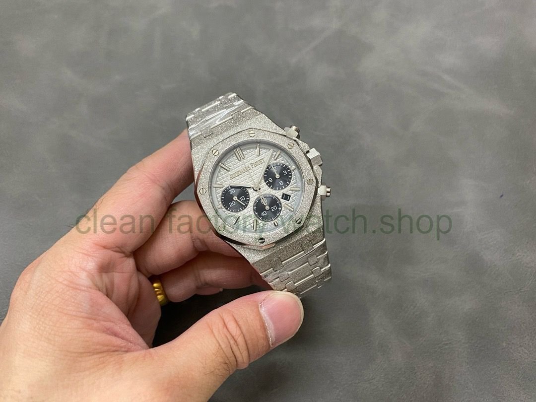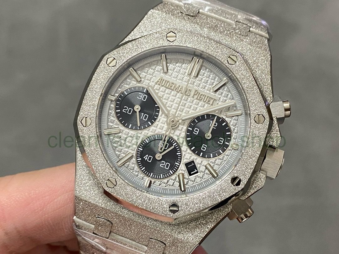 OMF hotly launches the new Royal Oak series of new frost gold craft 26240 model chronograph, which is consistent with the original product (6-digit small seconds integrated movement, you can clearly watch the rotation of the gear through the back cover, 7750 chronograph movement, with anti-glare sapphire The high-transparent glass hands are polished without burrs. The case is made of fine steel and is top-grade polished. The texture is close to the original. The strap is made of the original strap. The strap has a delicate brushed pattern that will not cut your hands sharply. The switch design of the buckle and the strap are The carving process of the buckle is consistent with that of the original product, and the literal restoration of the original workmanship and color details are flawless when put together with the original product. The rough and elegant 41 dial is full of strength and has a super luminous display, which can read the time in any environment.