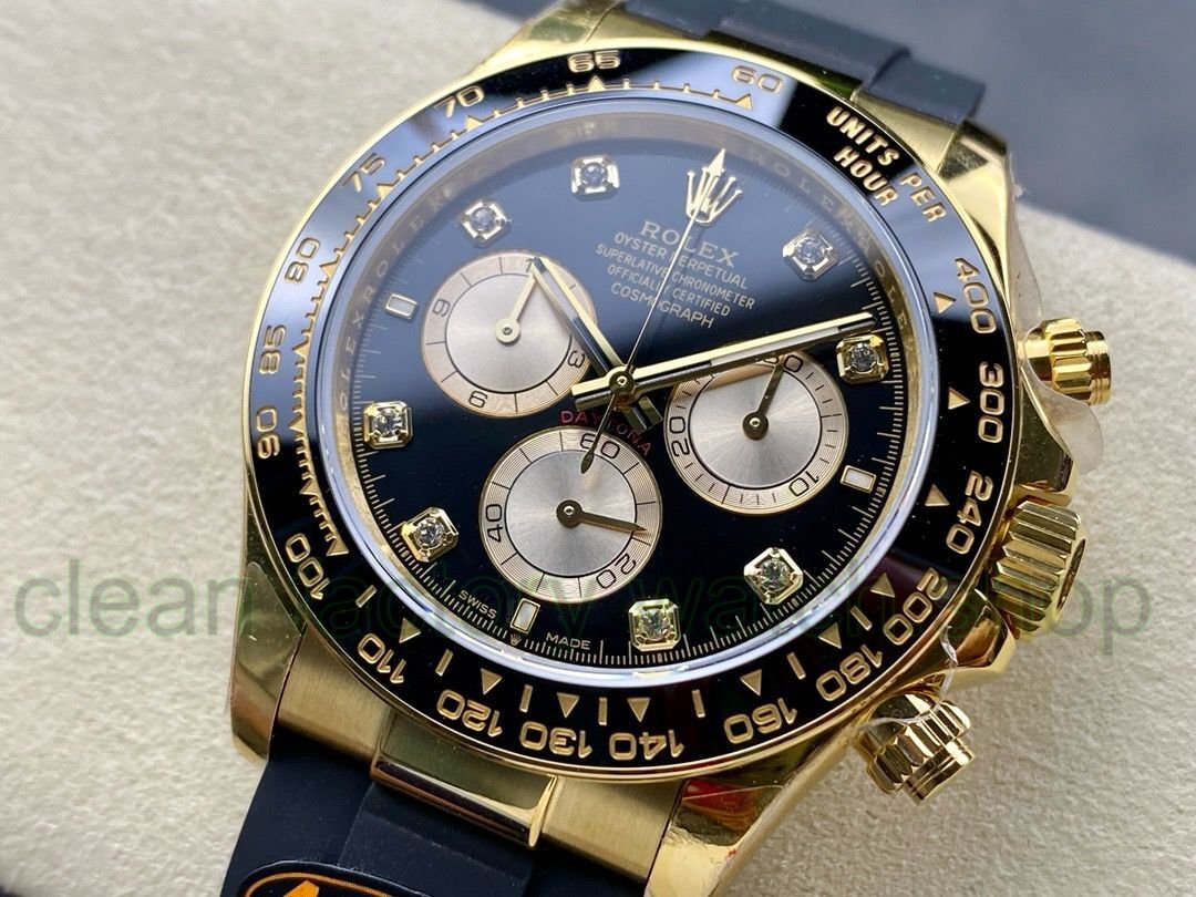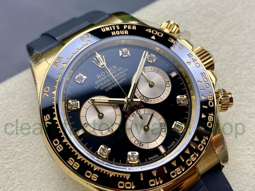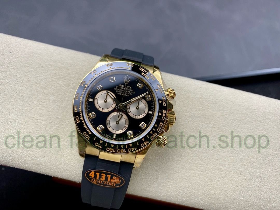 The QF Factory Rolex Daytona Super Counterweight Version has comprehensively analyzed every part of the original movement and created Cal.4130 and Cal.4131 integrated movements that are indistinguishable from the original ones. They not only achieve all functions but are also stable and durable. The factory spends a lot of money to purchase multiple styles of originals for mold production of accessories, ensuring that the watch case and various hardware parts can be used with the originals. At the same time, the original 40mm size and 11.8 thickness are consistent with the originals.