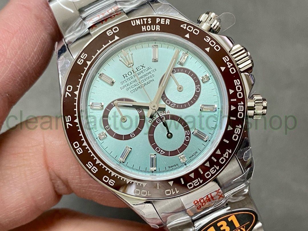 The QF Factory Rolex Daytona Super Counterweight Version has comprehensively analyzed every part of the original movement and created Cal.4130 and Cal.4131 integrated movements that are indistinguishable from the original ones. They not only achieve all functions but are also stable and durable. The factory spends a lot of money to purchase multiple styles of originals for mold production of accessories, ensuring that the watch case and various hardware parts can be used with the originals. At the same time, the original 40mm size and 11.8 thickness are consistent with the originals.