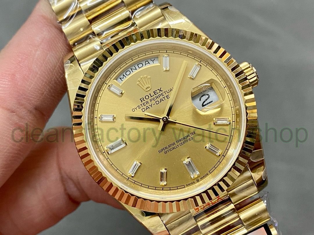 QF Factory ‘Counterweight 183g’ Rolex Day-Date 40 228238-0005 40mm Full Yellow Gold Baguette Diamond Champagne Dial