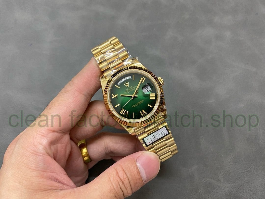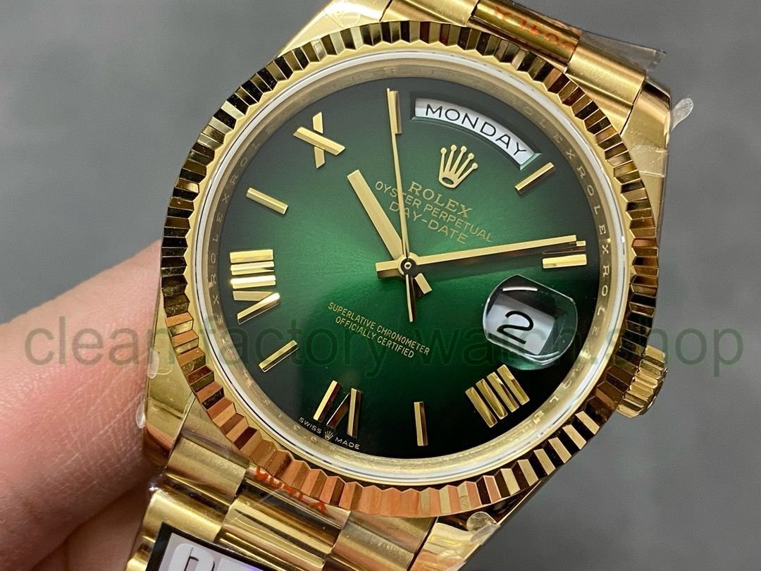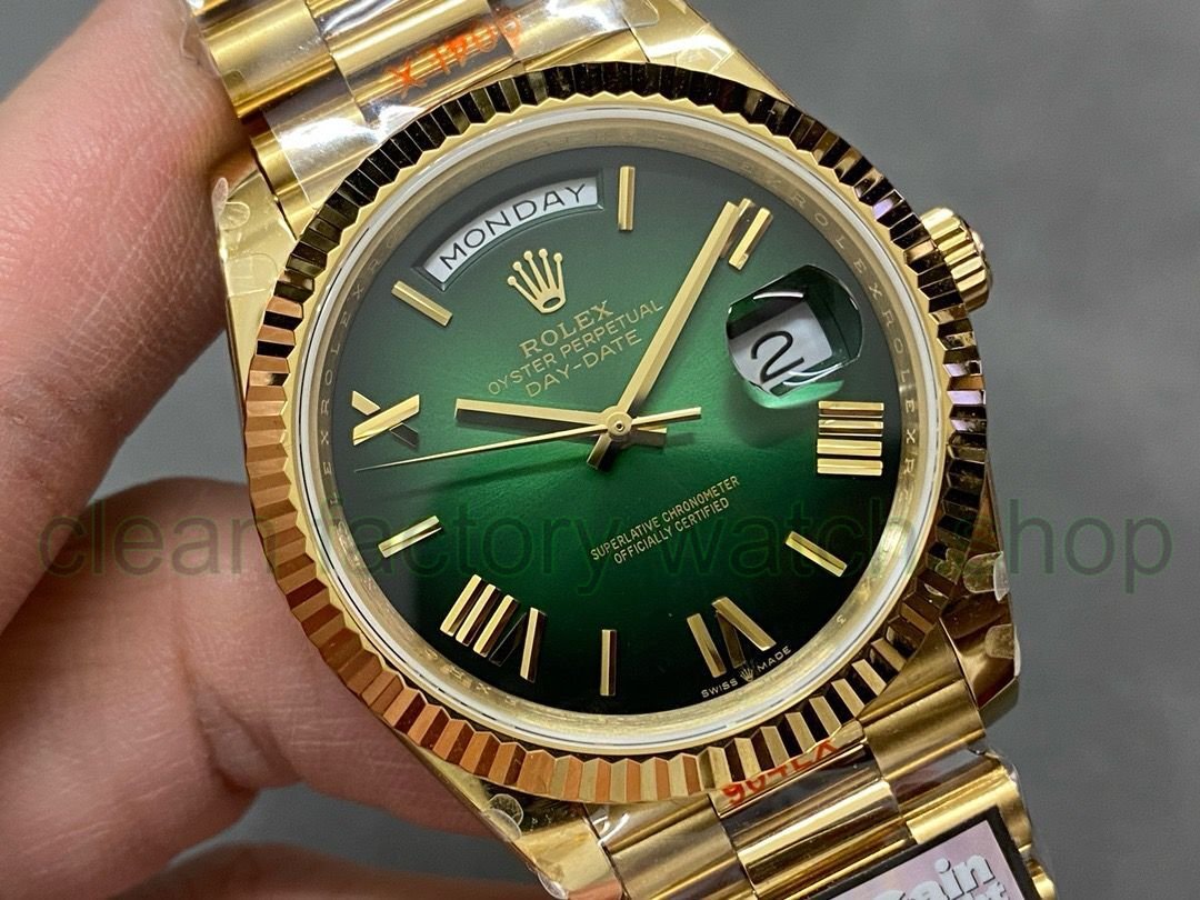 QF Factory ‘Counterweight 183g’ Rolex Day-Date 40 228238-0061 40mm Full Yellow Gold Roman Number Dark Green Dial