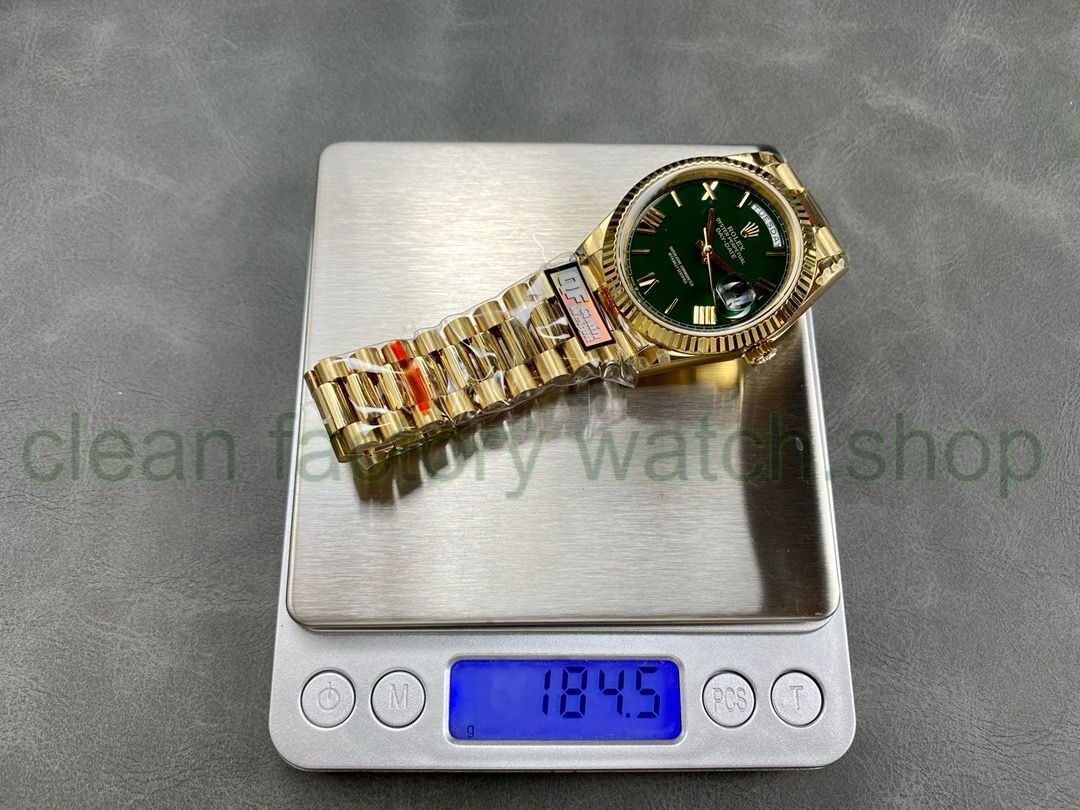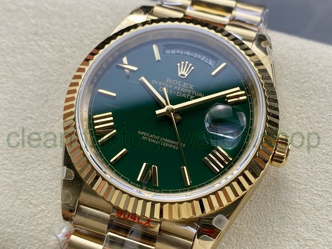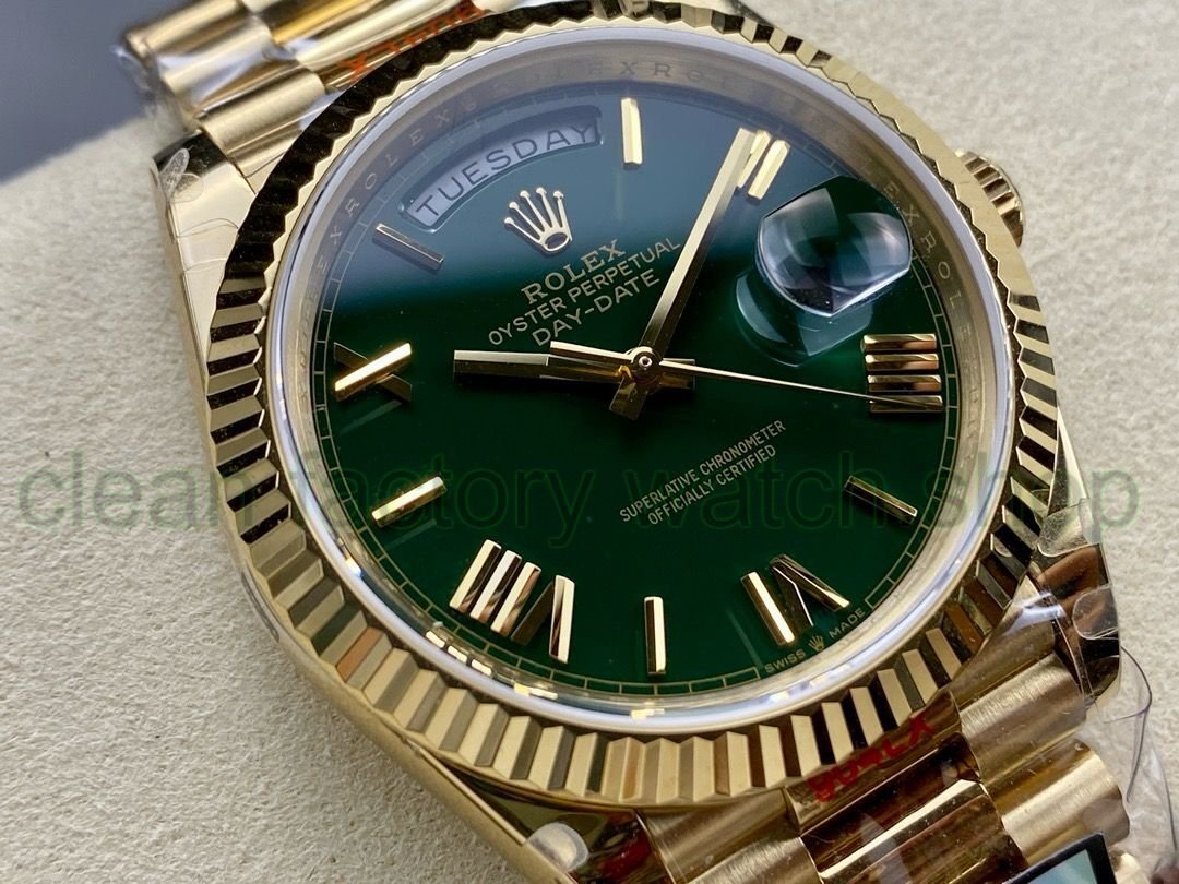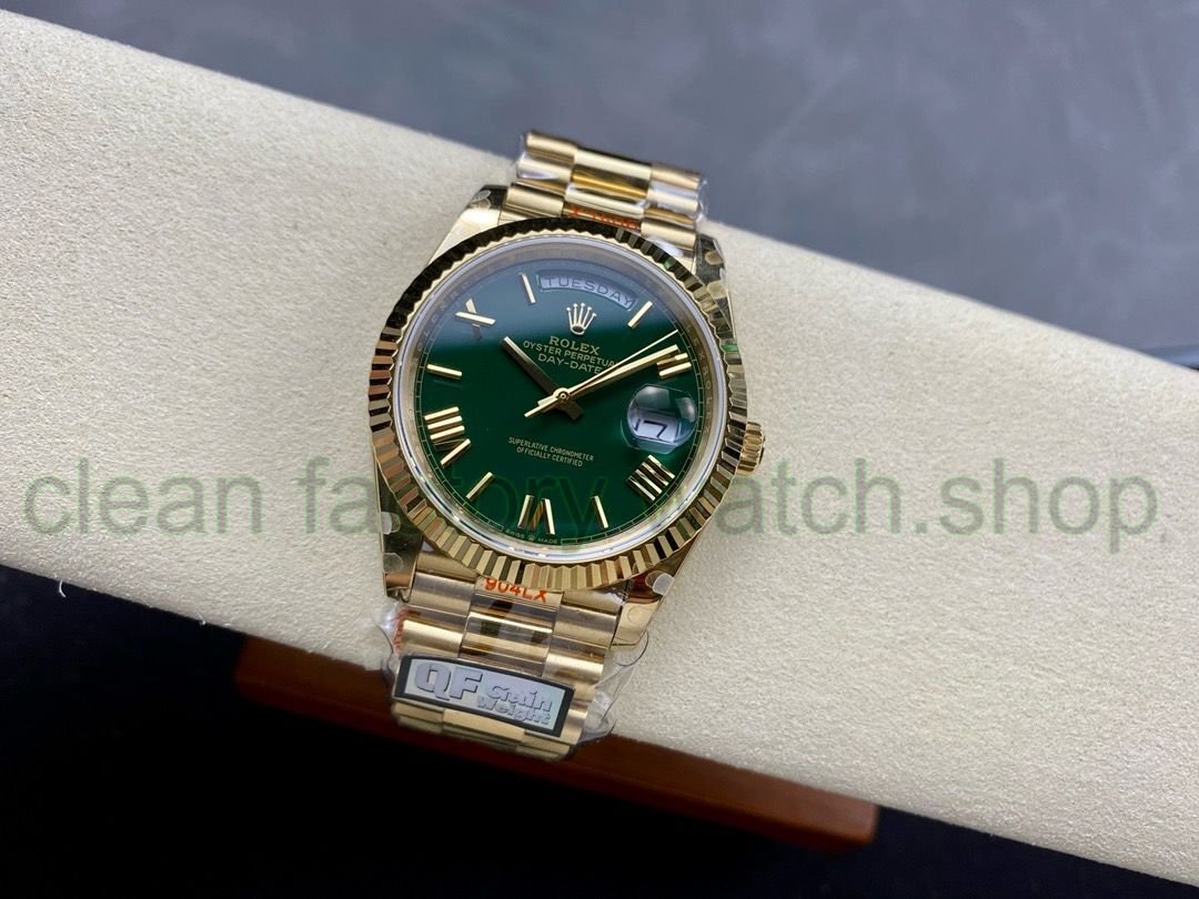 QF Factory ‘Counterweight 183g’ Rolex Day-Date 40 228238-0069 40mm Full Yellow Gold Roman Number Green Dial