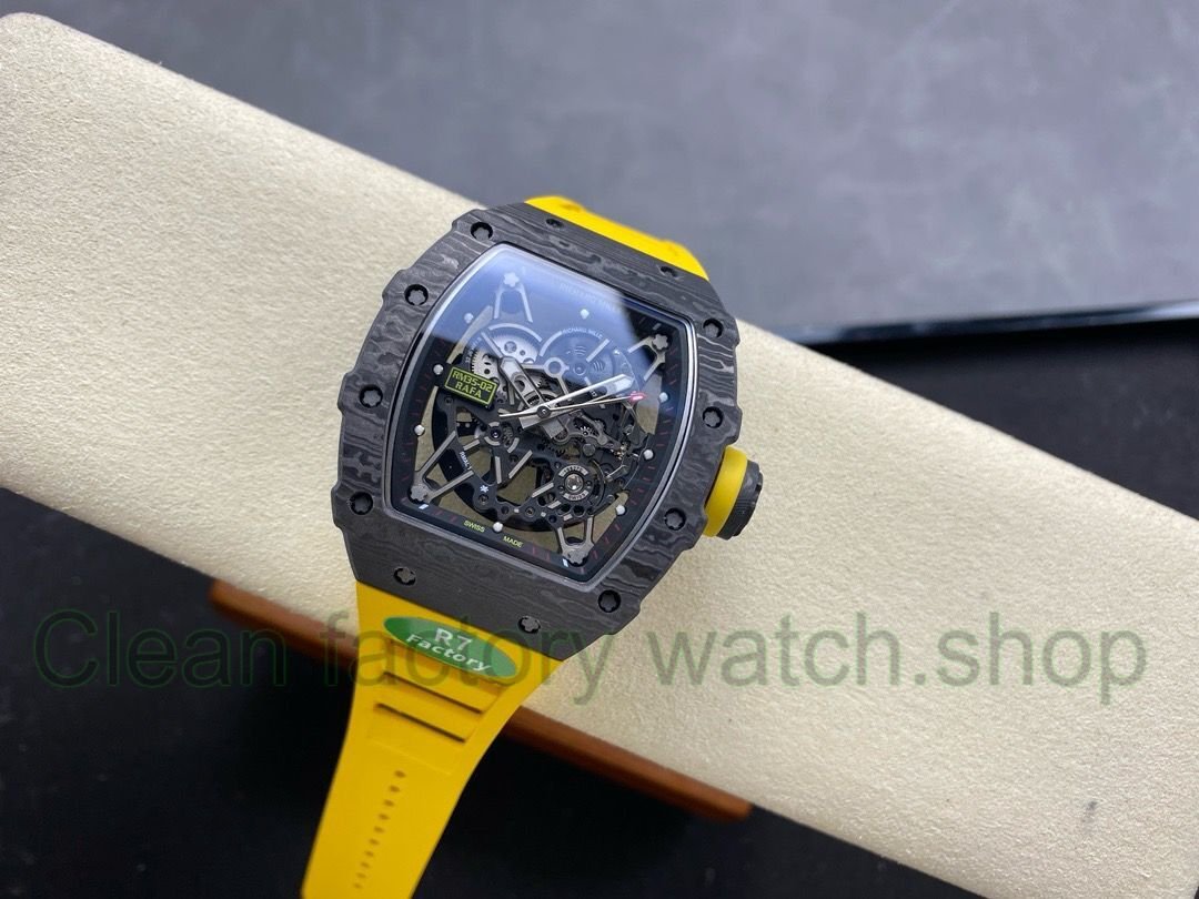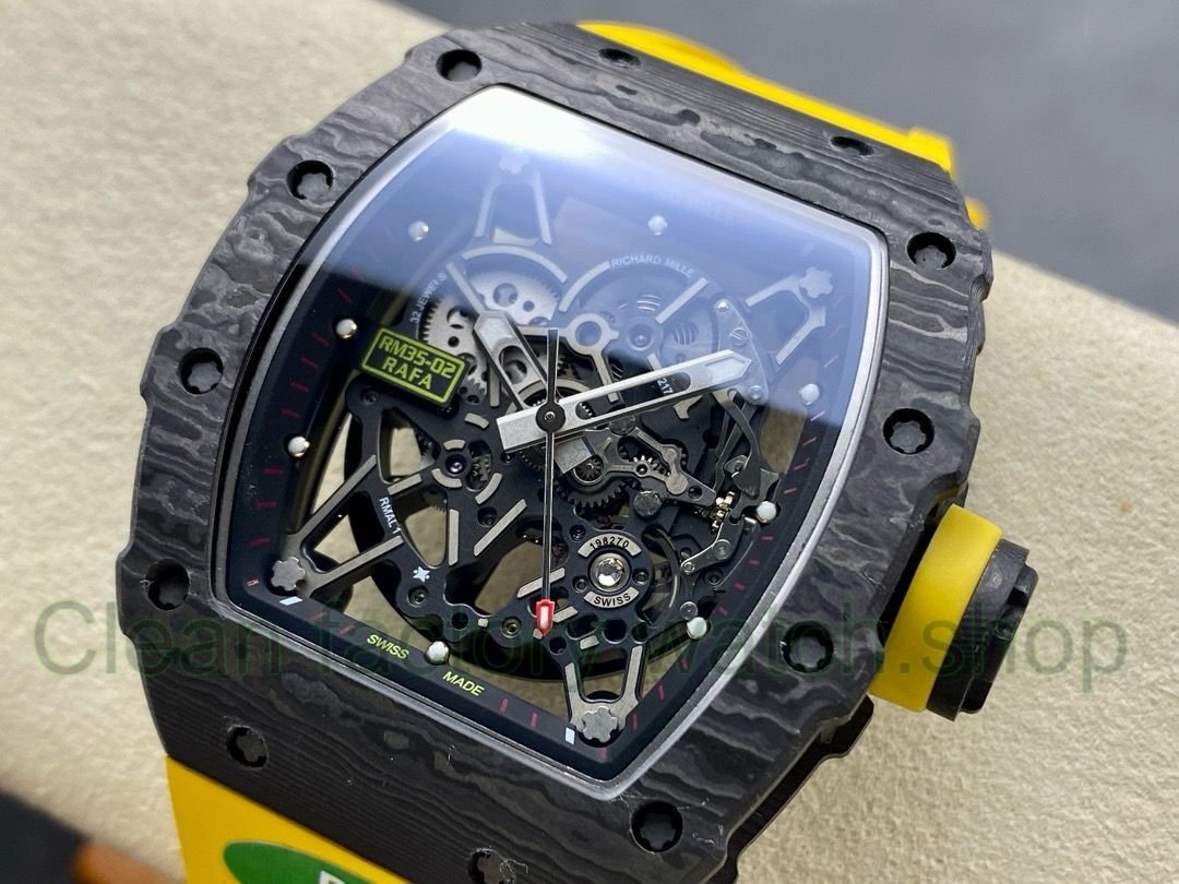 R7 Factory Richard Mille RM35-02 44.5mm Carbon Fiber Yellow Rubber Strap Skeletonized Dial