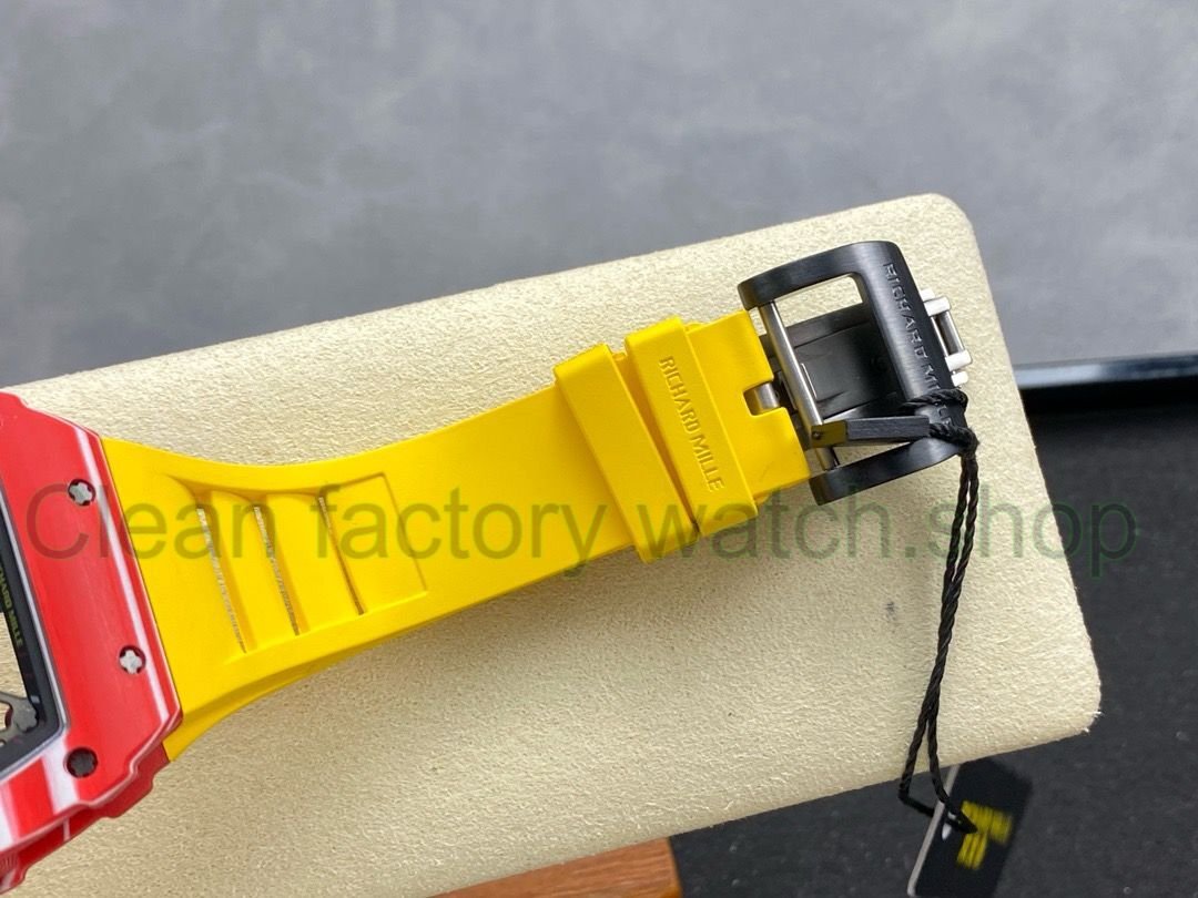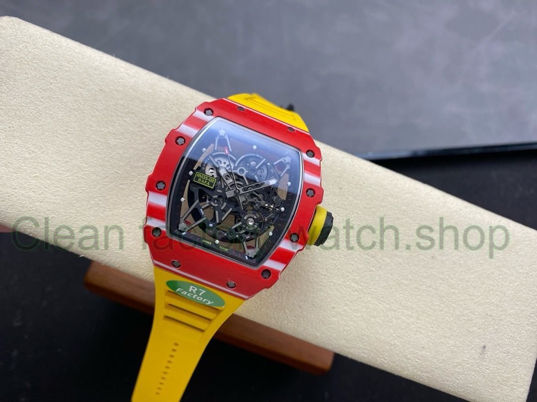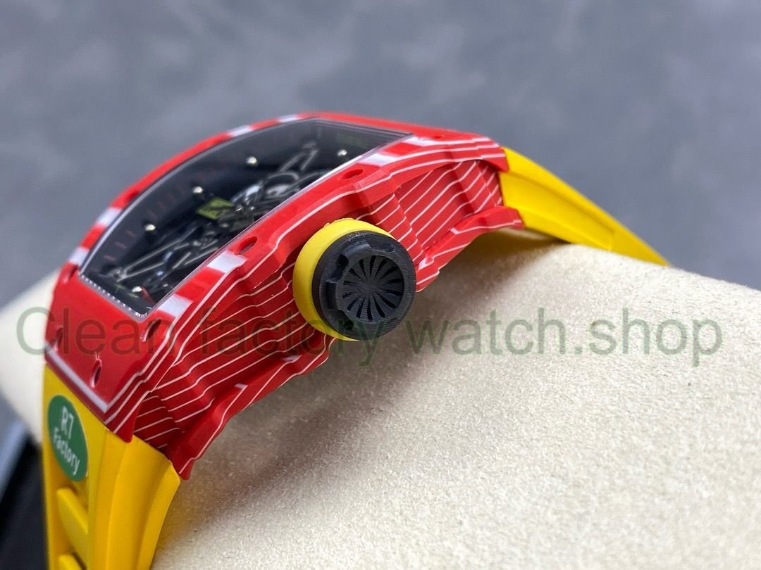 R7 Factory Richard Mille RM35-02 44.5mm Red Carbon Fiber Yellow Rubber Strap Skeletonized Dial