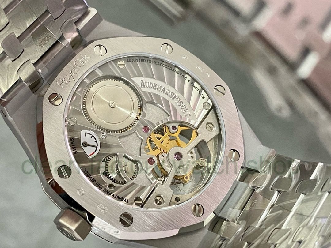 R8 AUDEMARS PIGUET [Audemars Piguet Royal Oak Tourbillon Watch] Model: 26522ST.OO.1220ST.01 Ever-changing patterns, contrasts and colors, explore new ways, the legend of advanced watchmaking that the mind and eyes can appreciate together. Audemars Piguet’s iconic “Tapisseris” plaid design has evolved into a dazzling radial pattern, launching for the first time five new Royal Oak series tourbillon watches. Equipped with Cal.2924 tourbillon manual winding movement, the power reserve is 80 hours, the case diameter is 41mm and the thickness is 12.4mm.