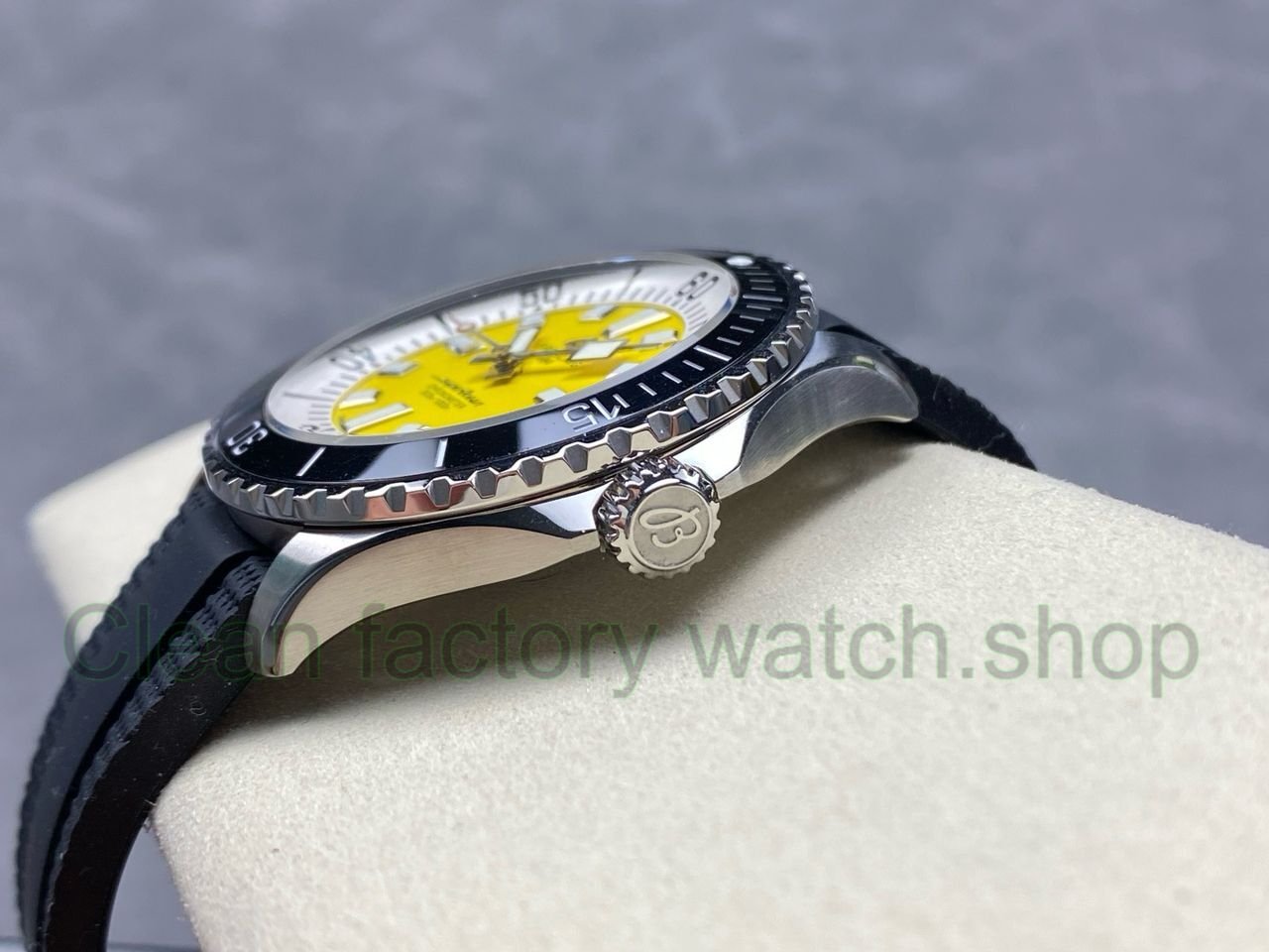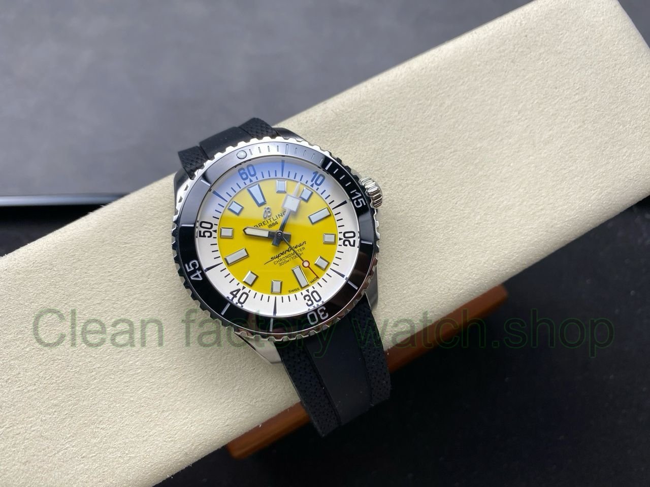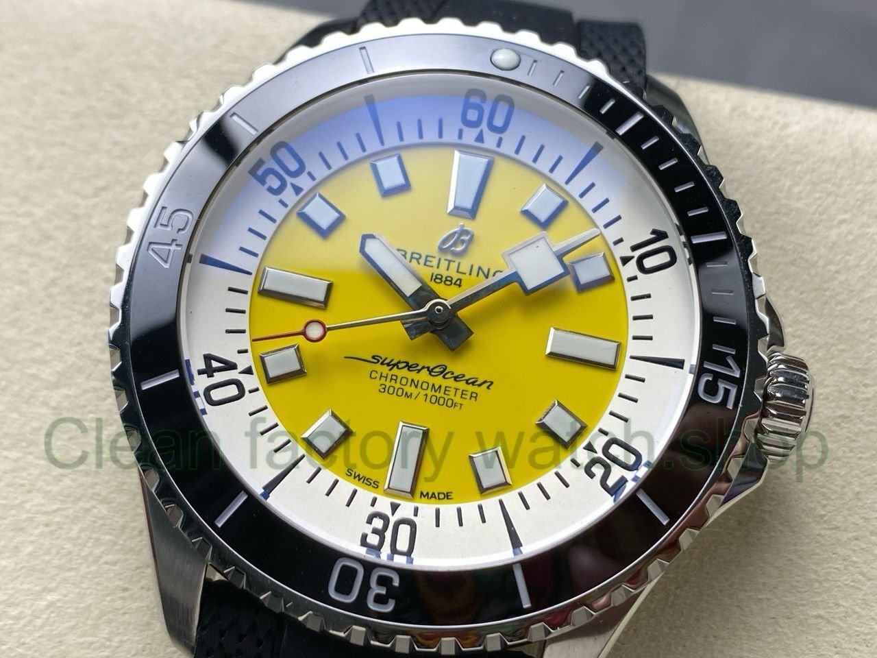 TF Factory Breitling Superocean A17375211I1S1 44mm Black Bezel Steel Black Rubber Strap Yellow Dial