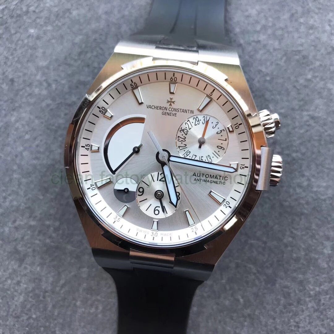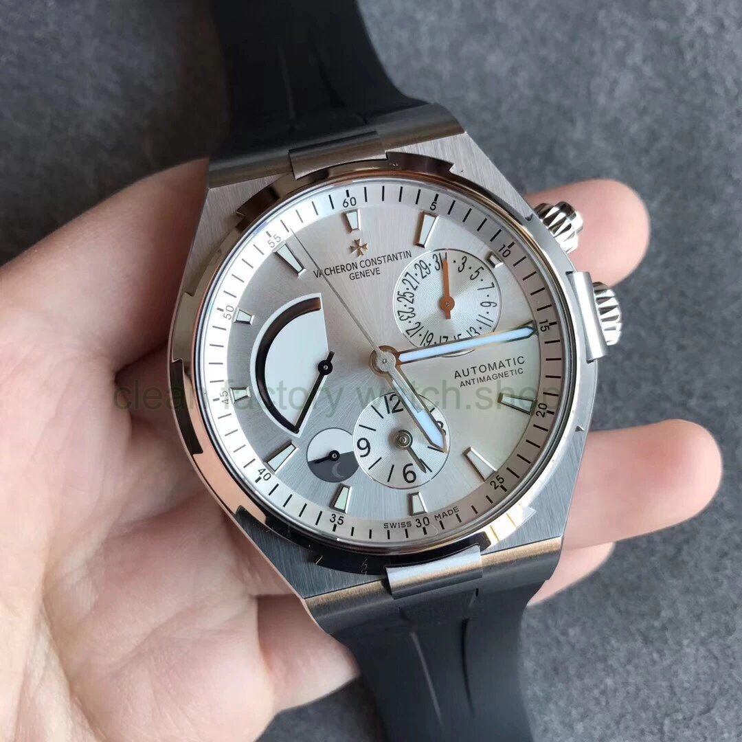 TWA Factory Vacheron Constantin Overseas Dual Time 42mm Steel Rubber Strap Silver Dial
