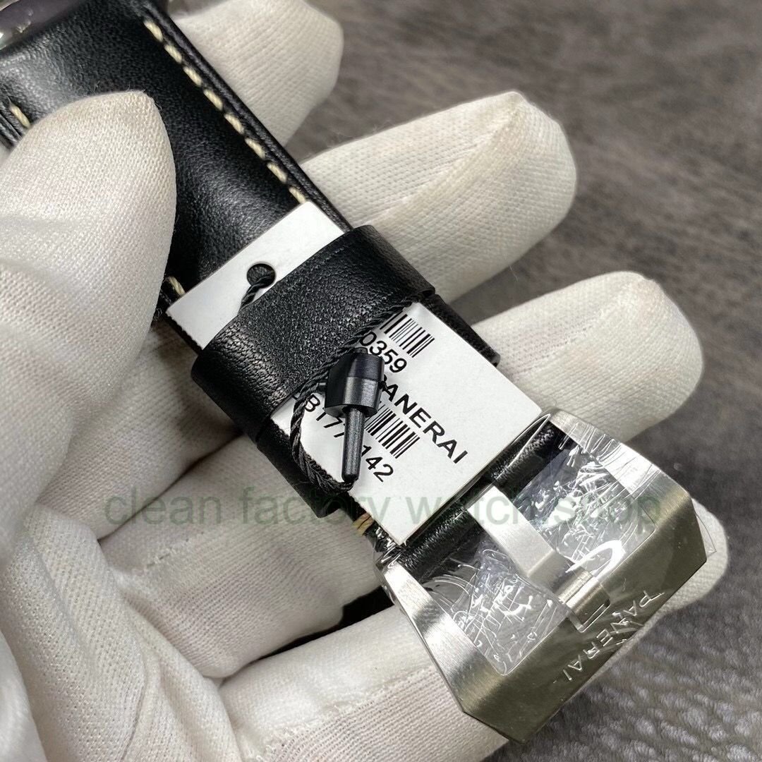 VS Factory Panerai Luminor Marina 1950 3 Days PAM 00359 44mm Steel Leather Strap Black Dial