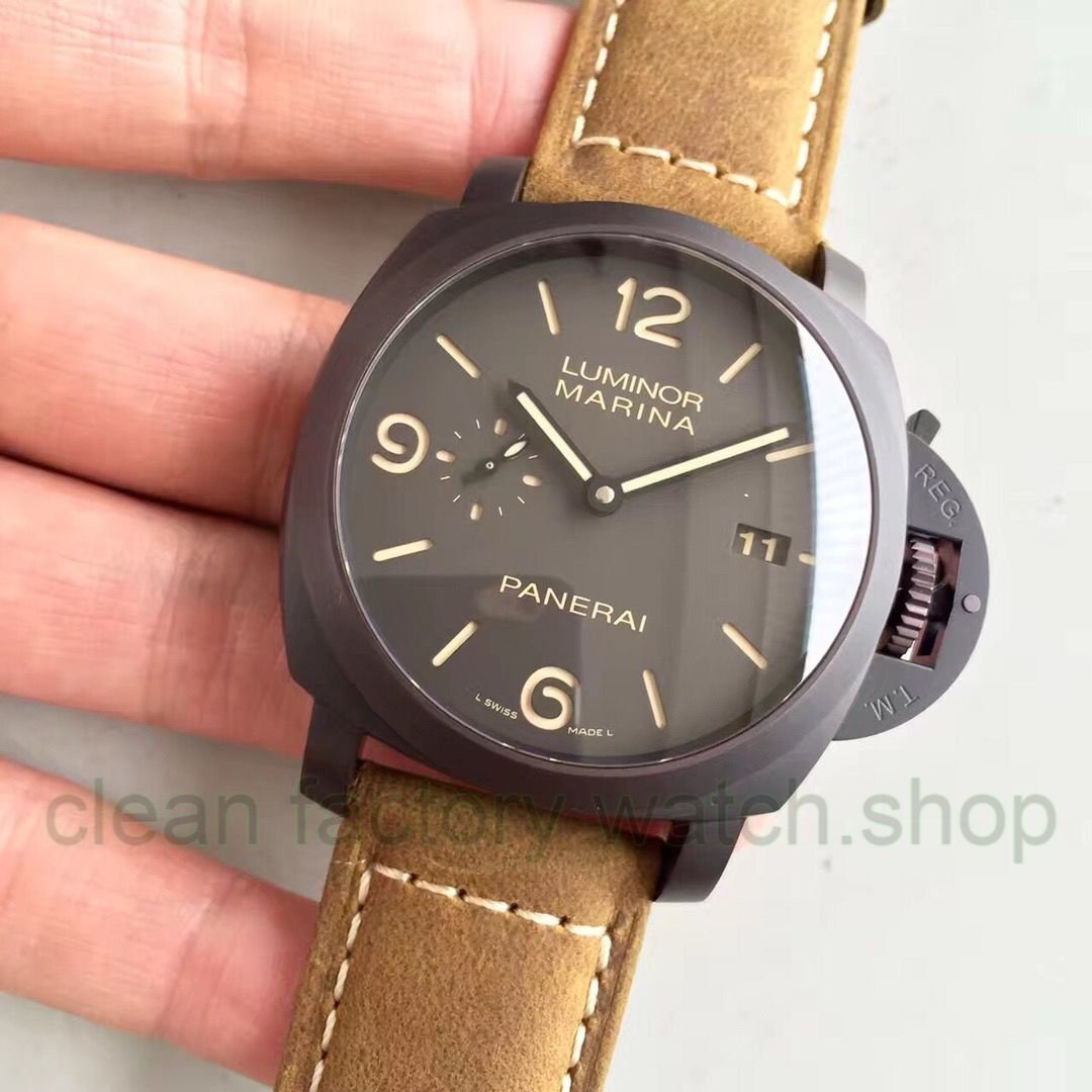 VS Factory Panerai Luminor Marina 1950 3 Days Pam00386 44mm Titanium Leather strap Brown Dial
