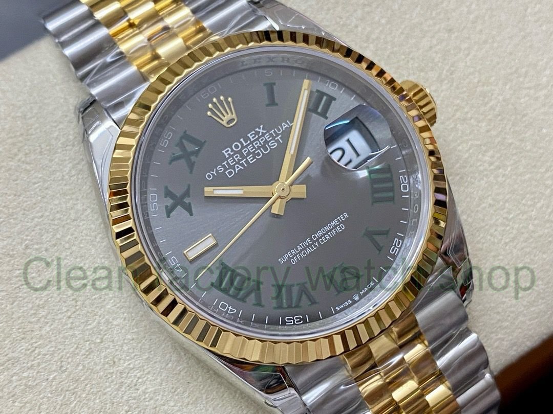 VS Factory Rolex Wimbledon Datejust 126233-0035 36mm Half Yellow Gold Roman Number Grey Dial Jubilee
