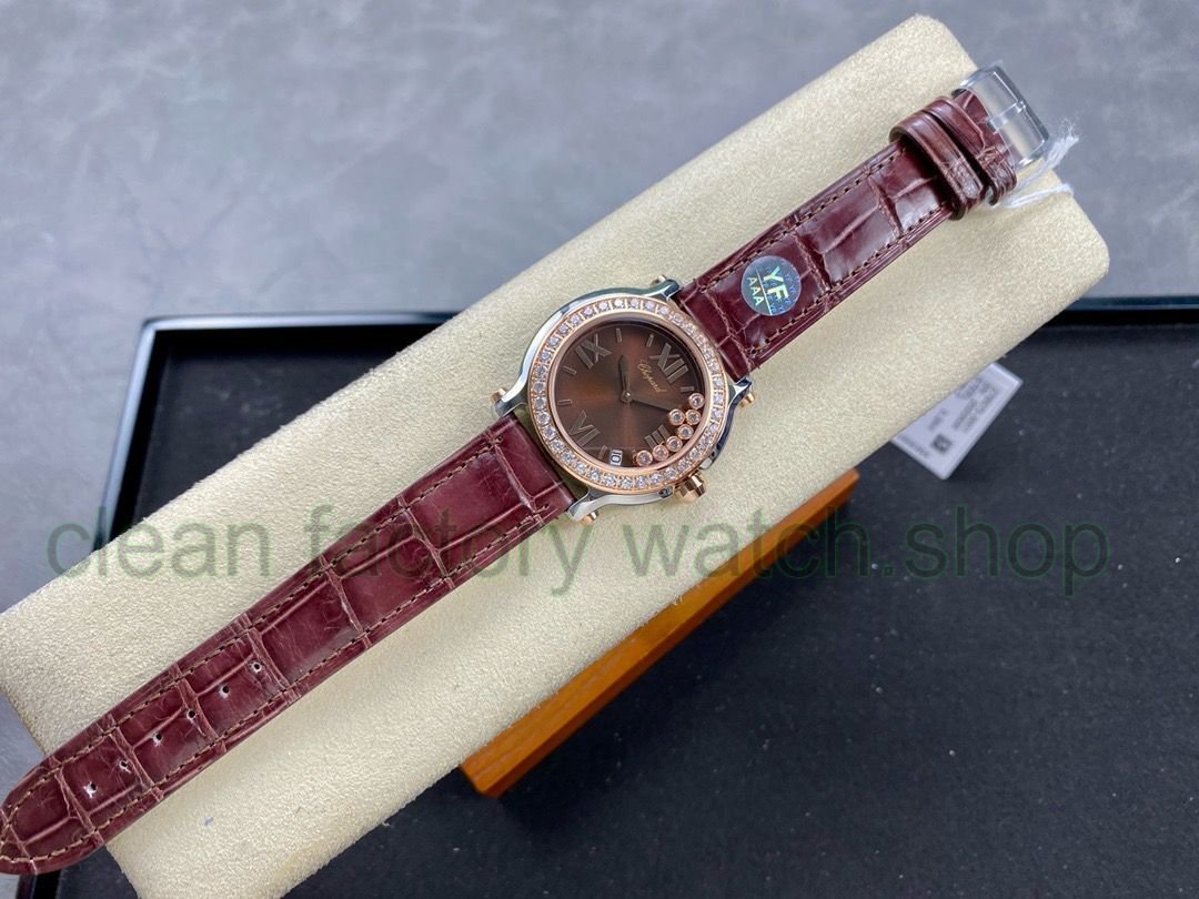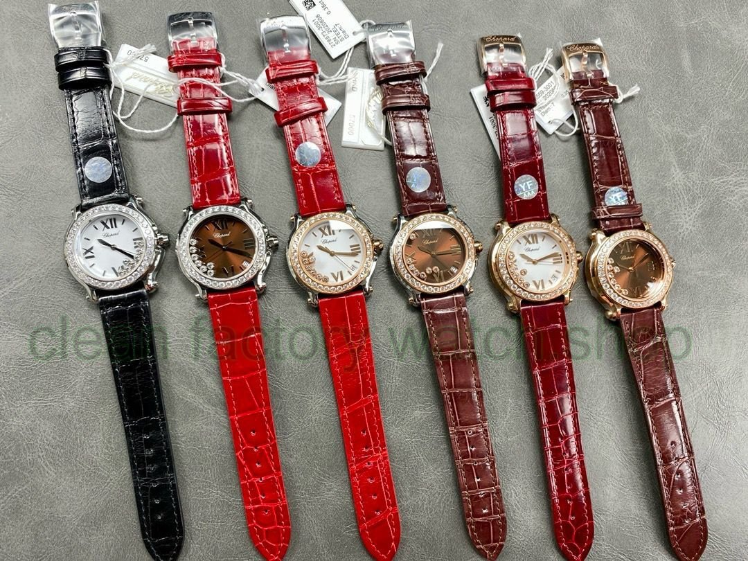 YF Chopard HAPPY DIAMONDS series 36mm, the original quartz movement ETA956.102 is the same as the genuine product at the counter, rare quantity, case size 36mm, 3H bar inlaid with blue crystal stone, imported American crocodile leather strap, the same as the genuine product ( Quick release strap) 50 meters waterproof,