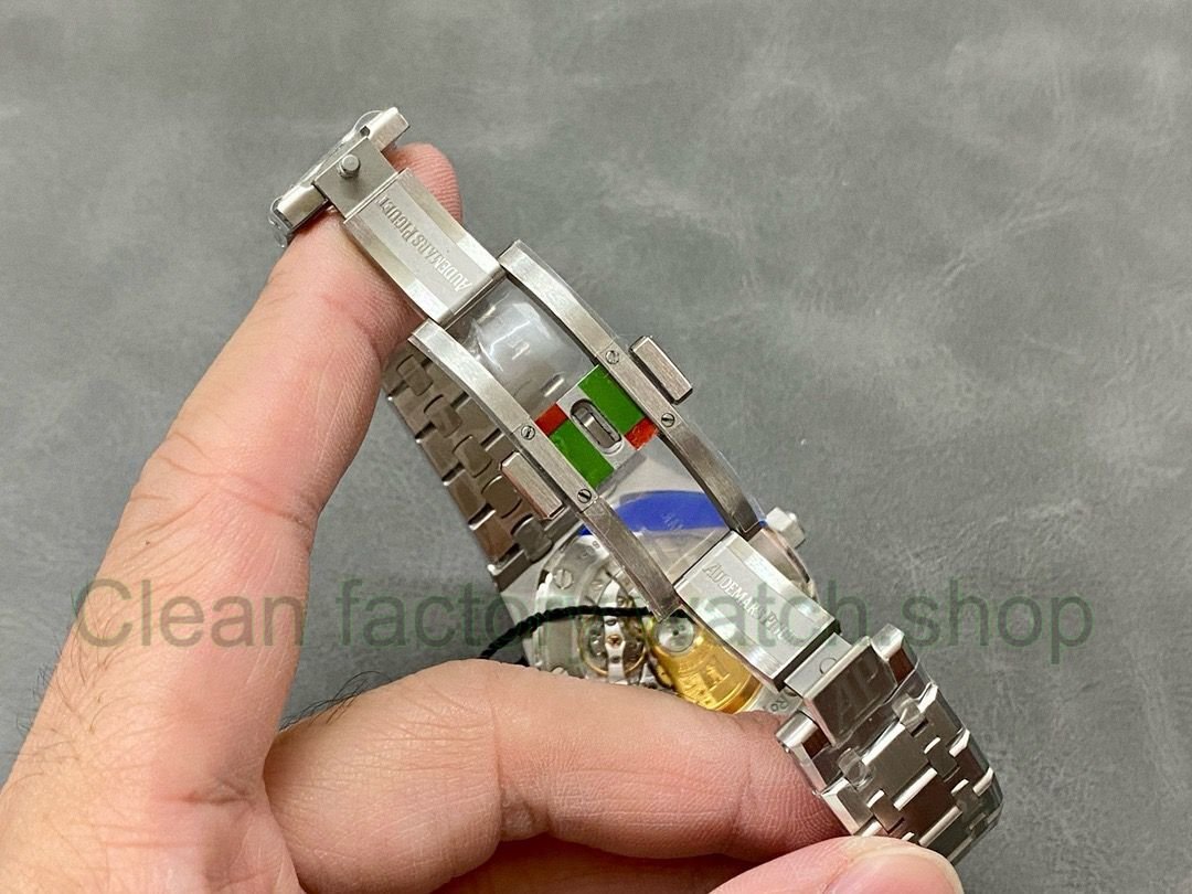 3. The Grande Tapisserie large square pattern on the dial is convex, with fluorescent three-dimensional time scales and Royal Oak hands. The large hands and time scales make reading easy and clear. The date display window at three o’clock is displayed in Arabic numerals.