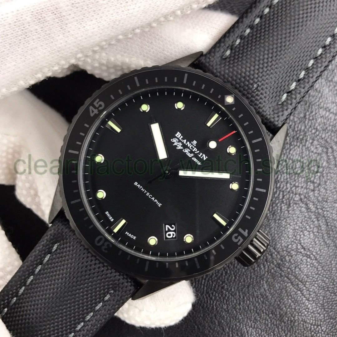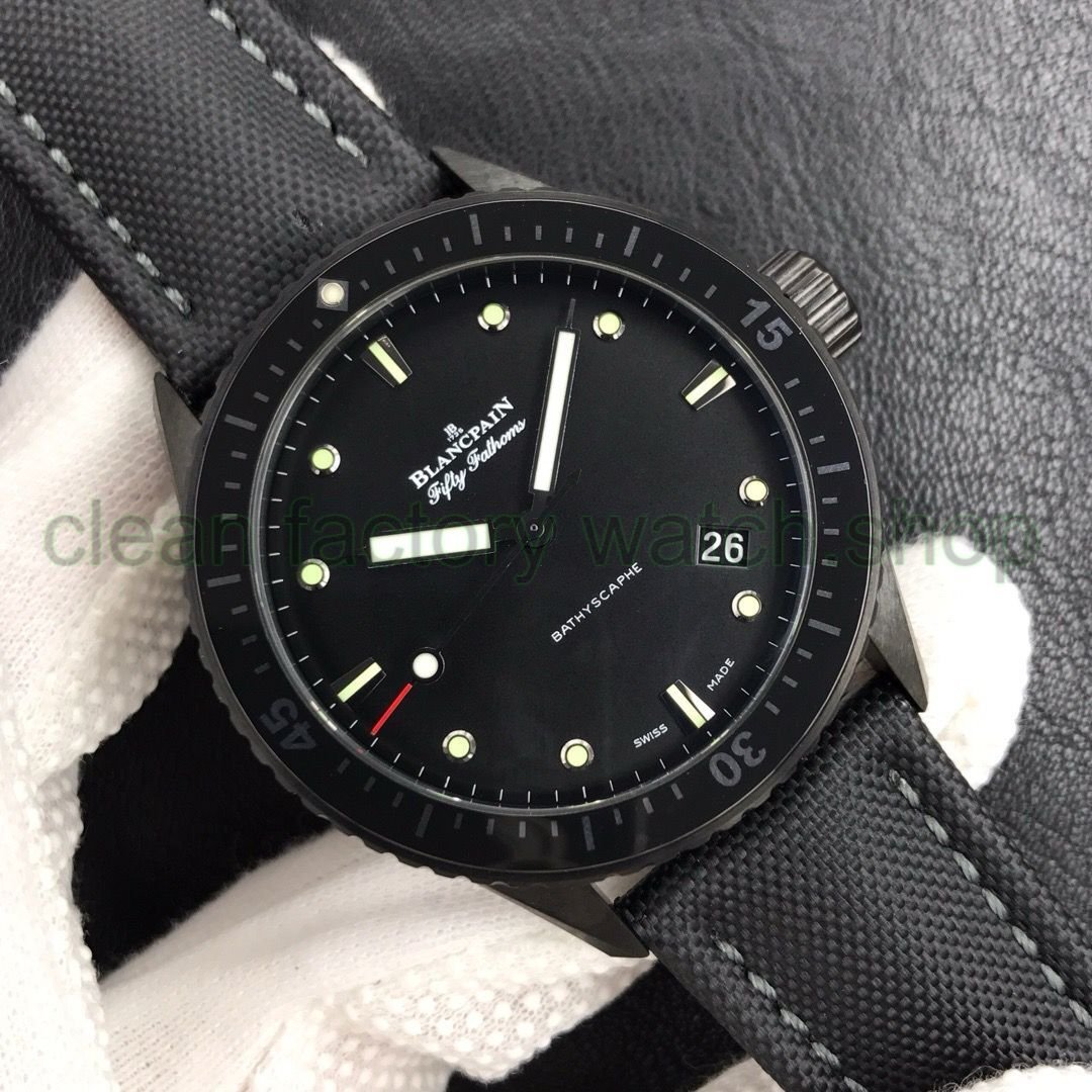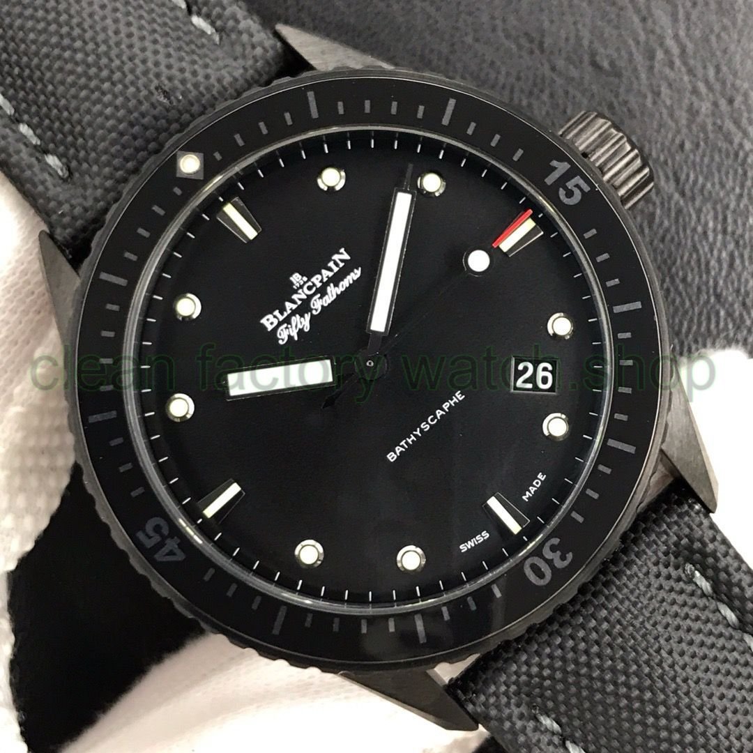 ZF Factory Blancpain Fifty Fathoms Bathyscaphe 5000-0130-B52A 43mm Ceramic Textile Strap Black Dial