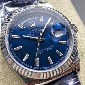8+ Factory ‘counterweight’ Rolex Day-Date 36mm 128239-0023 White Gold Crocodile Leather Strap Diamond Mope&Baguette Diamond Blue Ombré Dial