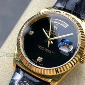 8+ Factory ‘counterweight’ Rolex Day-Date 36mm 18238 Yellow Gold Crocodile Leather Strap Diamond Mope Black Dial
