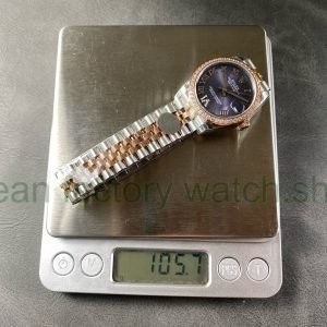 8+ Factory Rolex Counterweight Datejust 278381RBR-0020 31mm Diamond Rose Gold Bezel Half Rose Gold Diamond Roman Numerals Purple Dial Jubilee