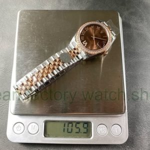 8+ Factory Rolex Counterweight Datejust 278381RBR-0028 31mm Diamond Rose Gold Bezel Half Rose Gold Diamond Brown Dial Jubilee