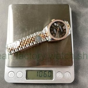 8+ Factory Rolex Counterweight Datejust 278381RBR-0030 31mm Diamond Rose Gold Bezel Half Rose Gold Diamond Roman Numerals Grey Dial Jubilee