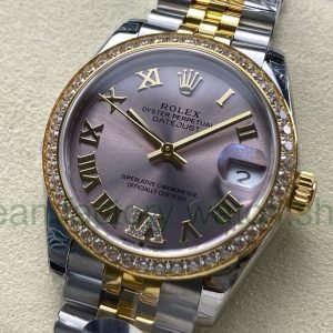 8+ Factory Rolex Counterweight Datejust 278383RBR-0022 31mm Diamond Yellow Gold Bezel Half Yellow Gold Diamond Purple Dial Jubilee
