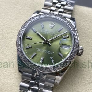 8+ Factory Rolex Counterweight Datejust 278384RBR-0022 31mm Diamond White Gold Bezel Full 904L Green Dial Jubilee