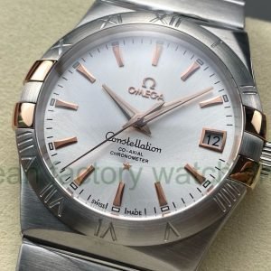 OM+ Factory Omega Constellation Men 123.25.38.21.52.001 38mm Diamond Bezel Rose Gold/Steel Diamond Silver Dial
