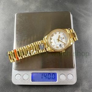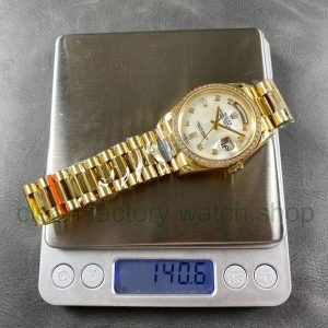 8+ Factory ‘Counterweight’ Rolex Day-Date 128348RBR-0017 36mm Diamond Bezel Full Yellow Gold Diamond Mope&Baguette Diamond Mother Of Pearl Dial