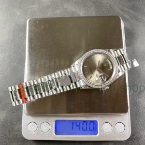 8+ Factory ‘Counterweight’ Rolex Day-Date 128349RBR-0001 36mm Diamond Bezel Full White Gold Silver Dial